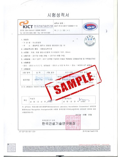 열반사단열재 eastern-α 1001, 60T 시험성적서
